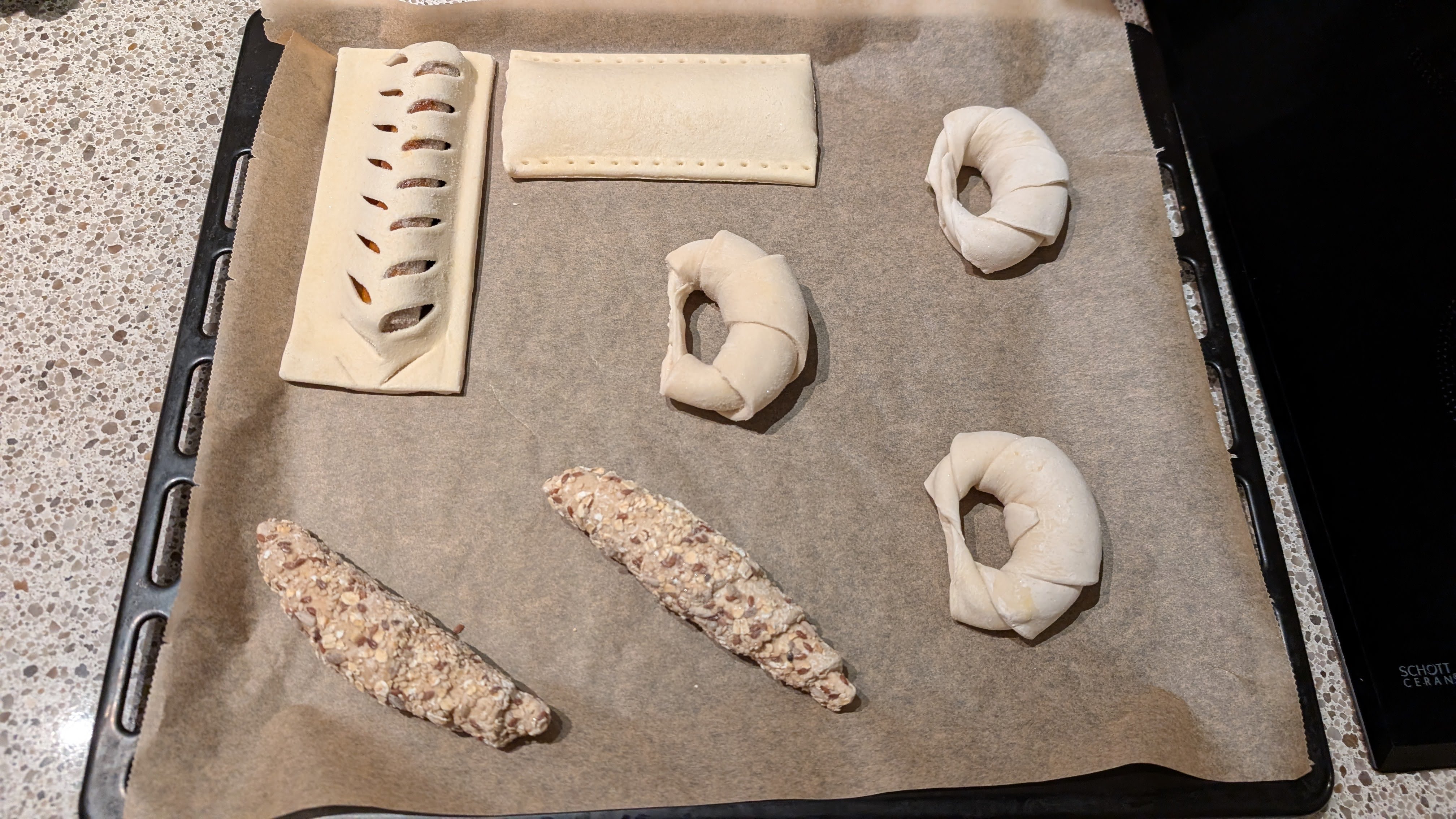 Oven voorverwarmen is niet noodzakelijk. Als de croissants mooi gerezen zijn in de nacht; kan je de oven de volgende ochtend gelijk aanzetten op 200 graden en hoef je niet de oven eerst voor te verwarmen. Afhankelijk van de oven duurt het bakken dan 6 minuten langer. Alleen bij grote ovens kan voorverwarmen van de oven wel aan te raden zijn.